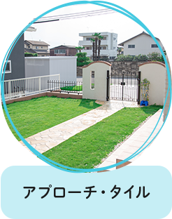 道路から玄関までを結ぶアプローチは、デザイン性と安全性を重視しましょう。雨の日には滑りにくく、お手入れもしやすいタイルの施工もオススメです。